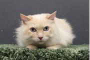 6ヶ月のペルシャの子です。1lヶ月前に洗ったそうです。今回はシャンプーしてお尻が汚れないよう少し短くカットしました。