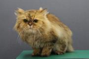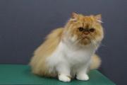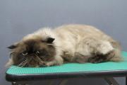 9ヶ月のエキゾチックのロングの子です。アゴ下とフリルをカットしました。被毛が少し脂っぽいのでしっかり洗いました。